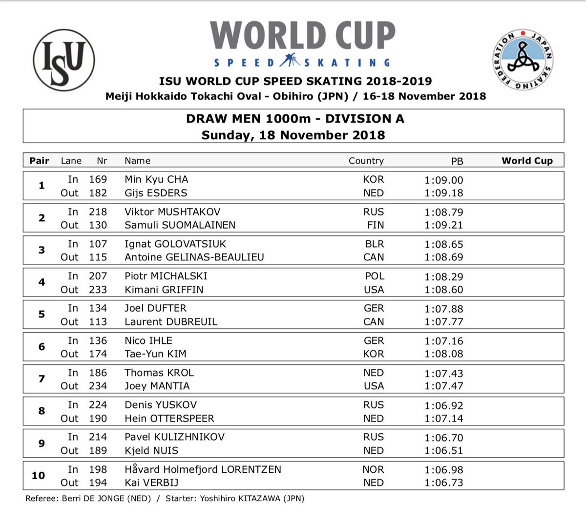 Zondag is de laatste dag van de wereldbekerwedstrijden in het Japanse Obihiro. Het belooft de langste schaatsdag van het weekend te worden met de 1000 meters, de 3000 meter dames, de 5000 meter heren en de team sprint als toetje.