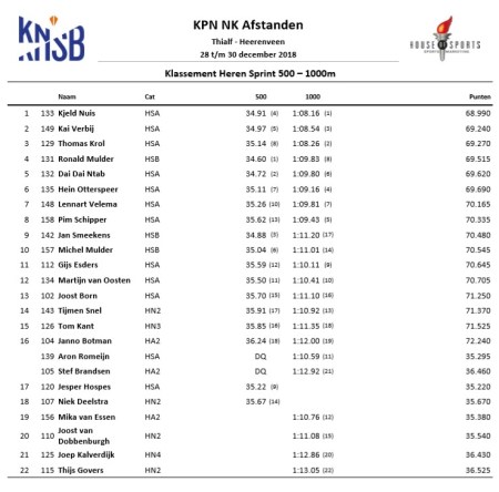 Klik hier voor de volledige uitslag van de 1000 meter heren