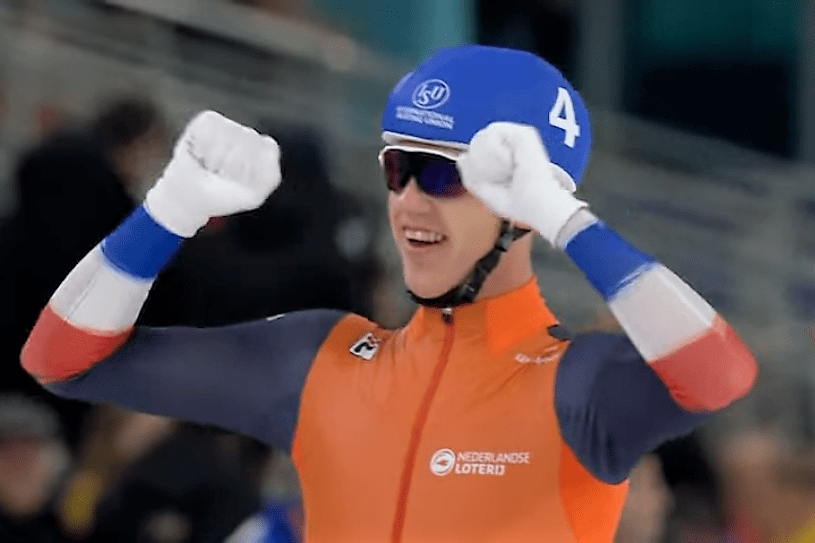 Het Amerikaanse fenomeen Jordan Stolz – die vorige week indruk maakte met de winst op de 1000 en 1500 meter in Stavanger – schakelde zichzelf uit in Heerenveen. Hij kwam ten val in zijn rit tegen Laurent Dubreuil.