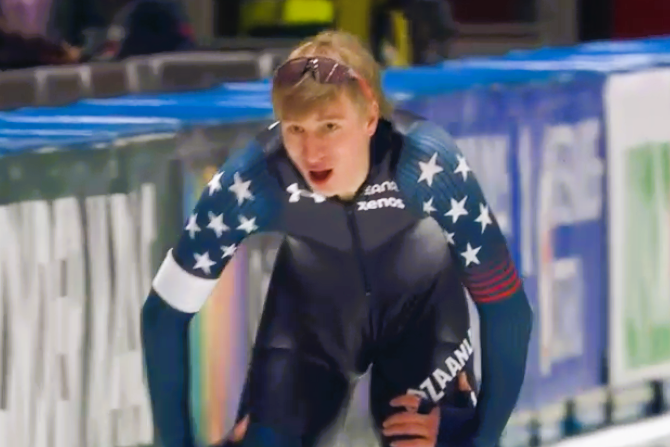 Bij afwezigheid van Kjeld Nuis – die vanwege de griep niet af kon reizen naar Polen – was Jordan Stolz vrijdag onbedreigd de sterkste man op de 1000 meter.