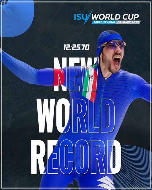 Davide Ghiotto heeft zaterdag bij de World Cup in Calgary het wereldrecord op de 10 kilometer verbeterd. (Foto © International Skating Union ISU)